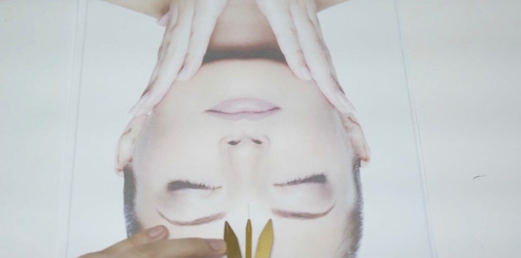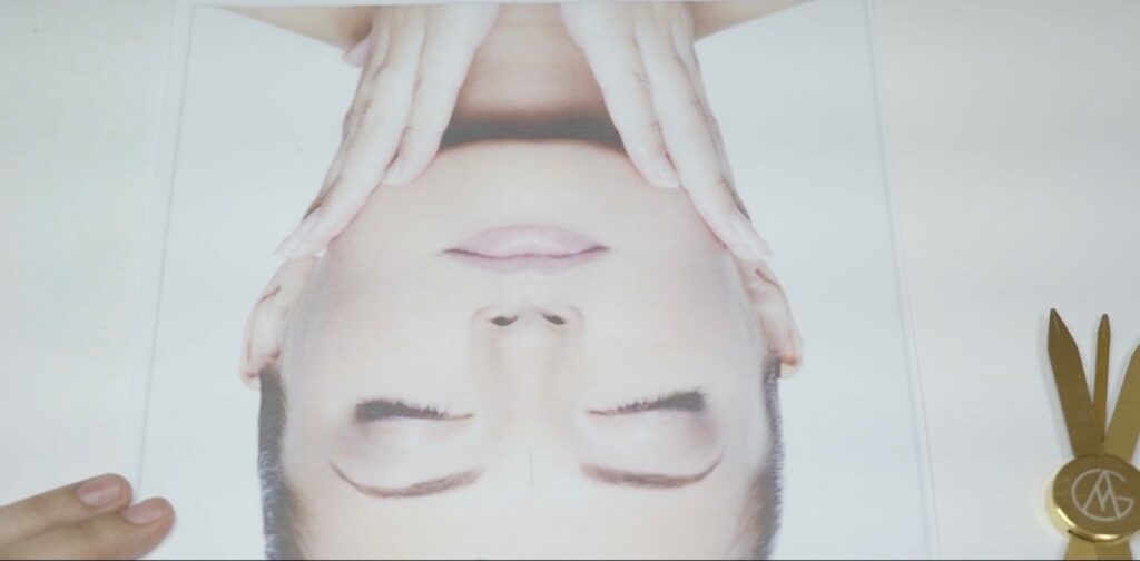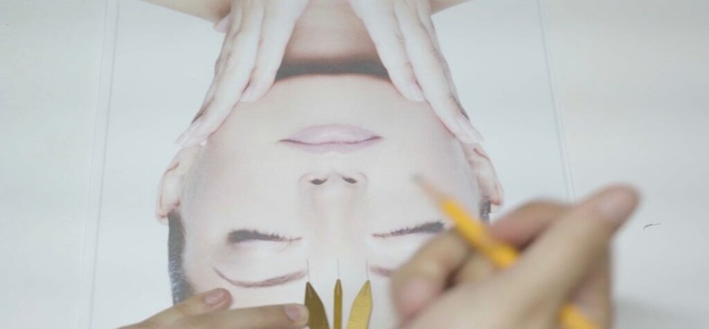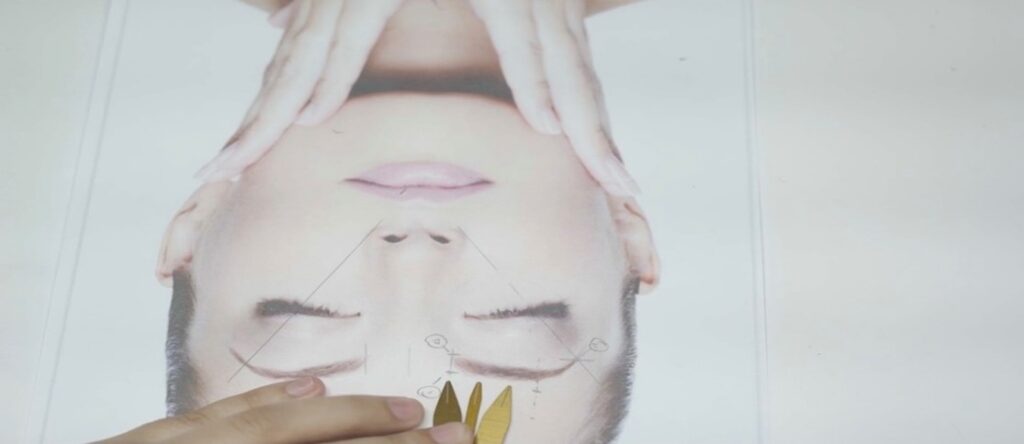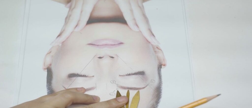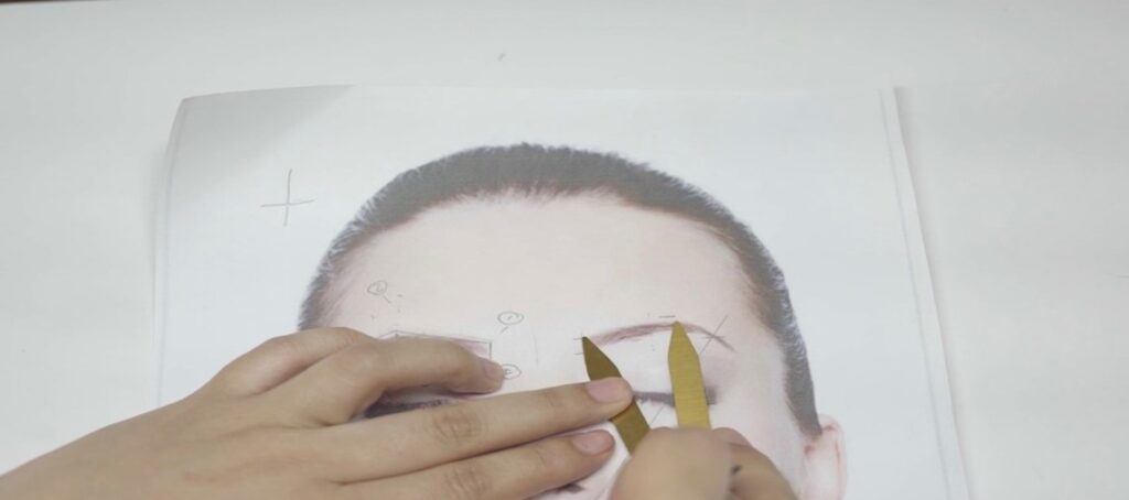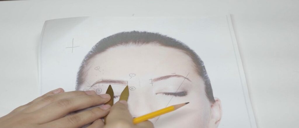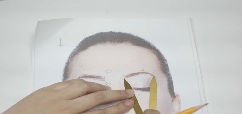 Para sacar la guía del final de nuestra ceja, tenemos que sacar una medida en los ojos.