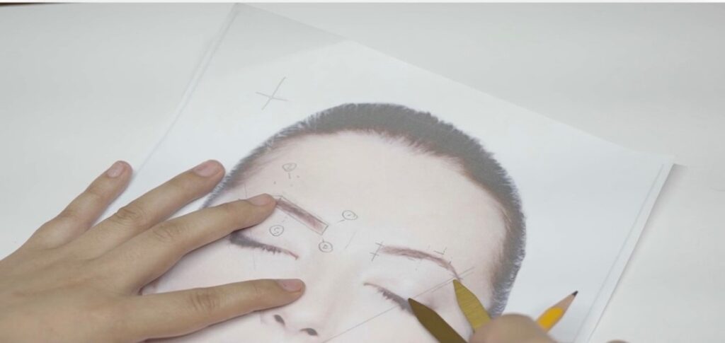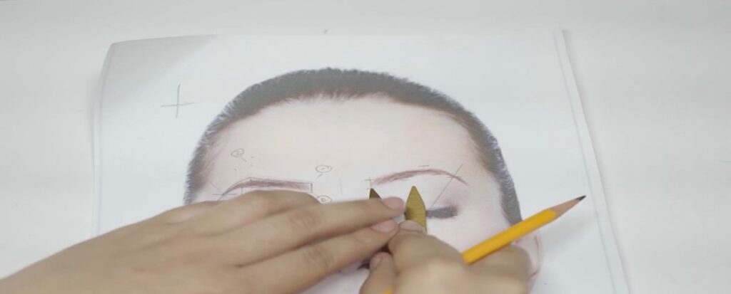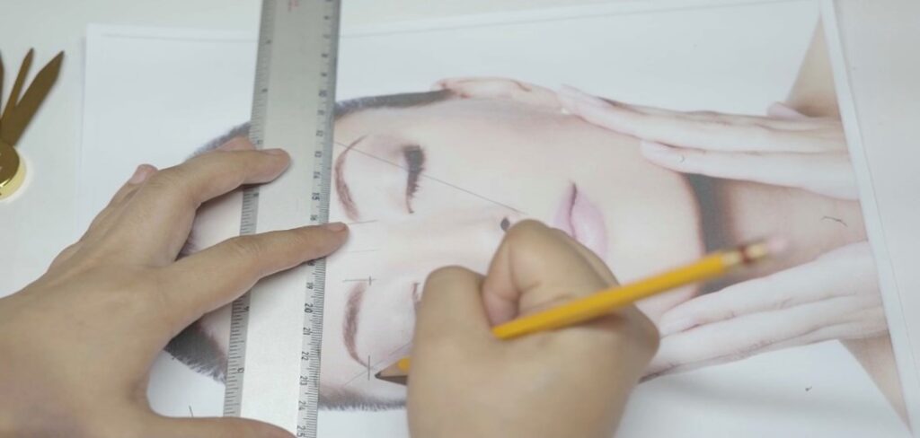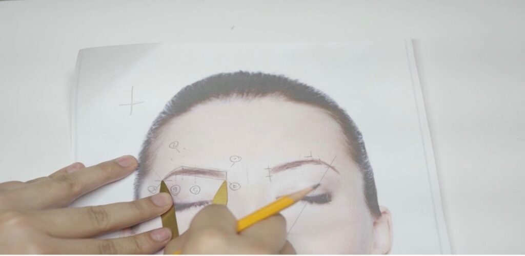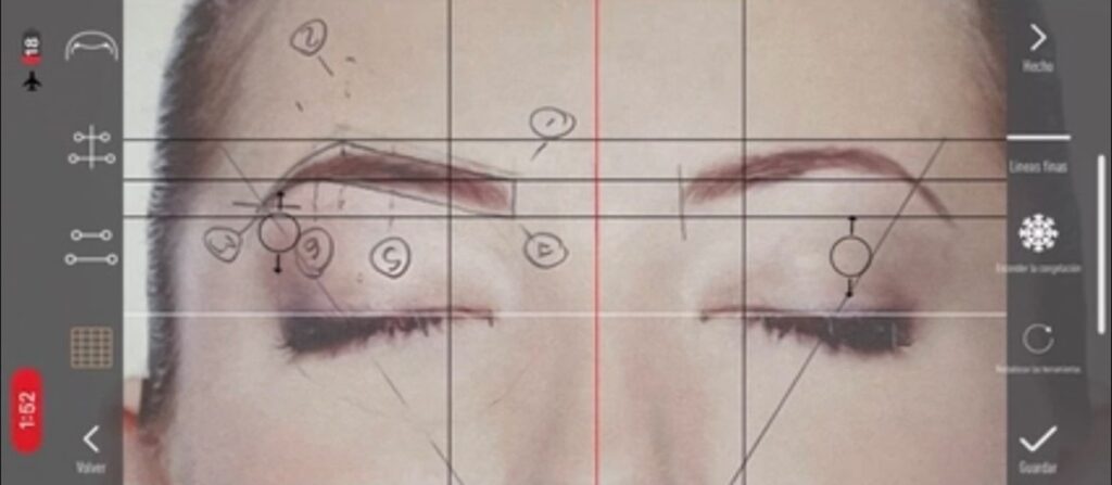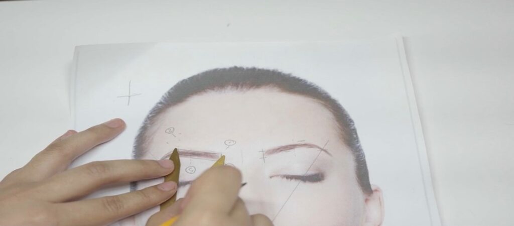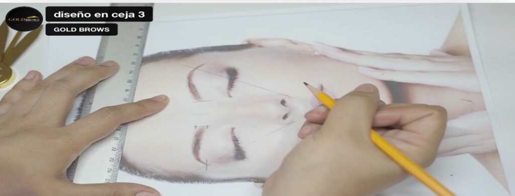 Una vez que colocamos el punto 4 procedemos a colocar el punto 3, el cual tiene que estar a la misma altura o puede llegar a estar un poco mas arriba, dependiendo de la ceja natural y colocamos una línea horizontal donde este nuestro punto 3