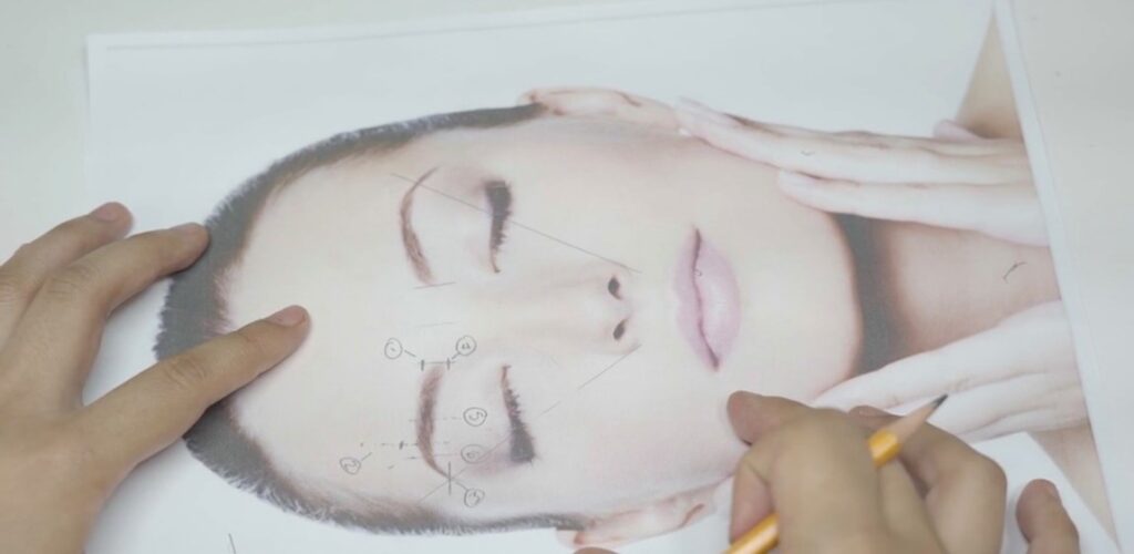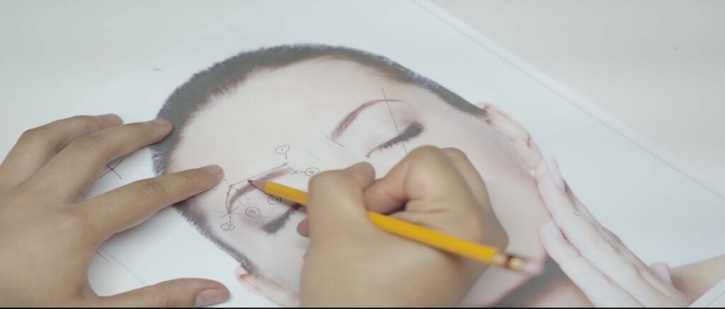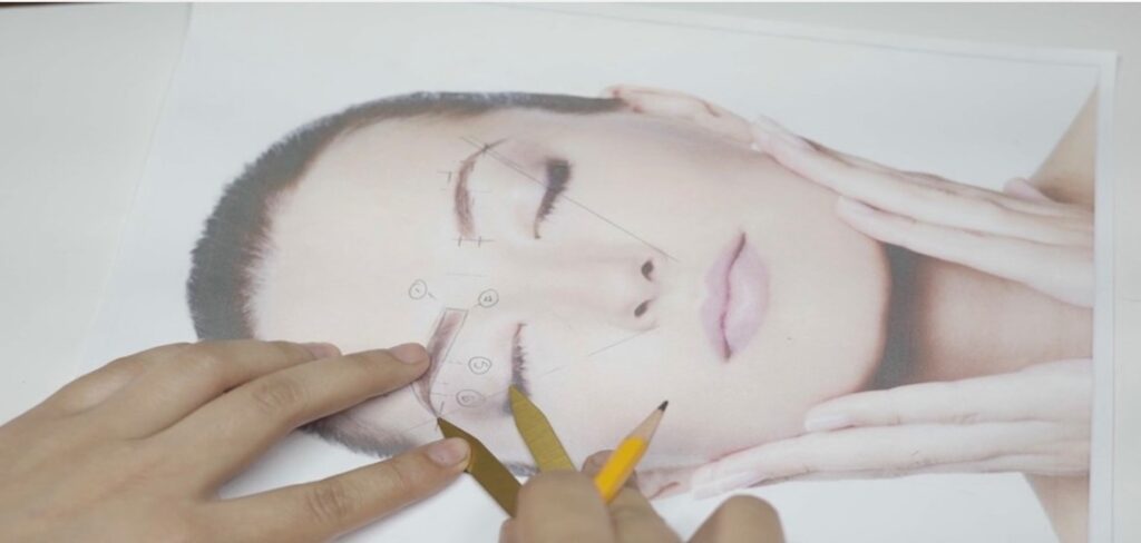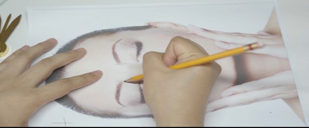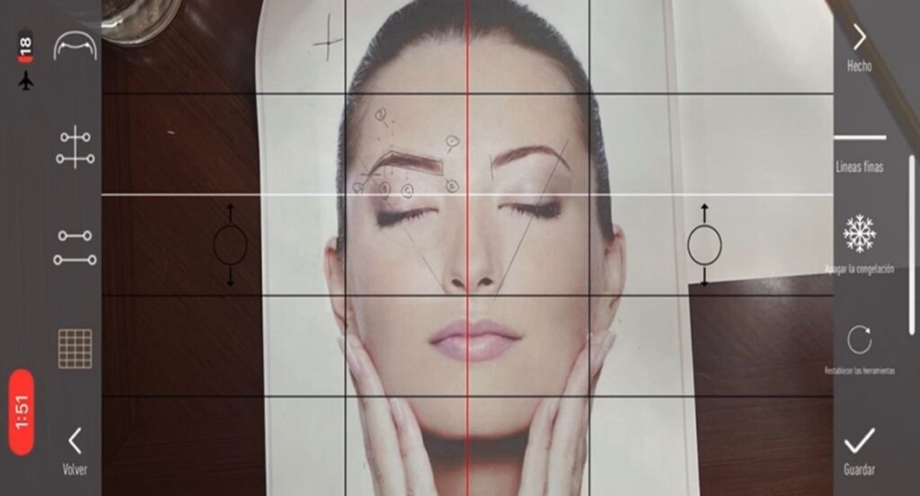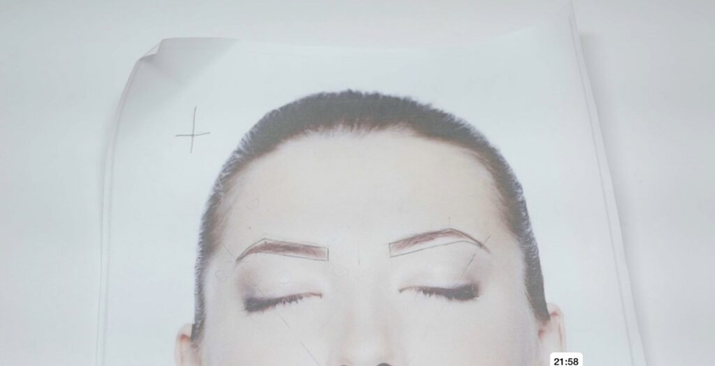 Una vez que colocamos el punto 4 procedemos a colocar el punto 3, el cual tiene que estar a la misma altura o puede llegar a estar un poco mas arriba, dependiendo de la ceja natural y colocamos una línea horizontal donde este nuestro punto 3