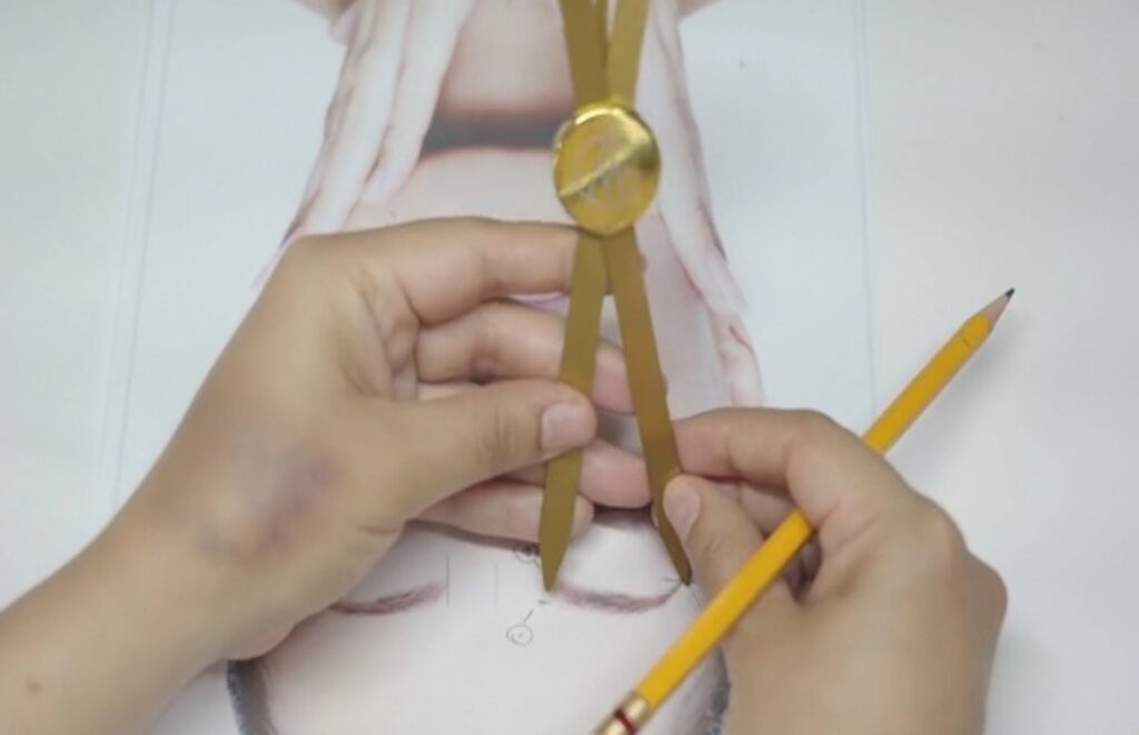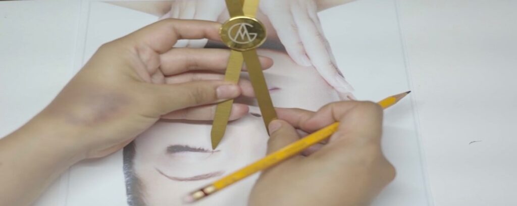 Medimos con la parte mas amplia de nuestro compas del punto 4 al 5 y copiamos en la otra ceja