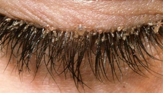 Piojos en las pestañas. Miden de 1 a 3.5 mm. Visibles.